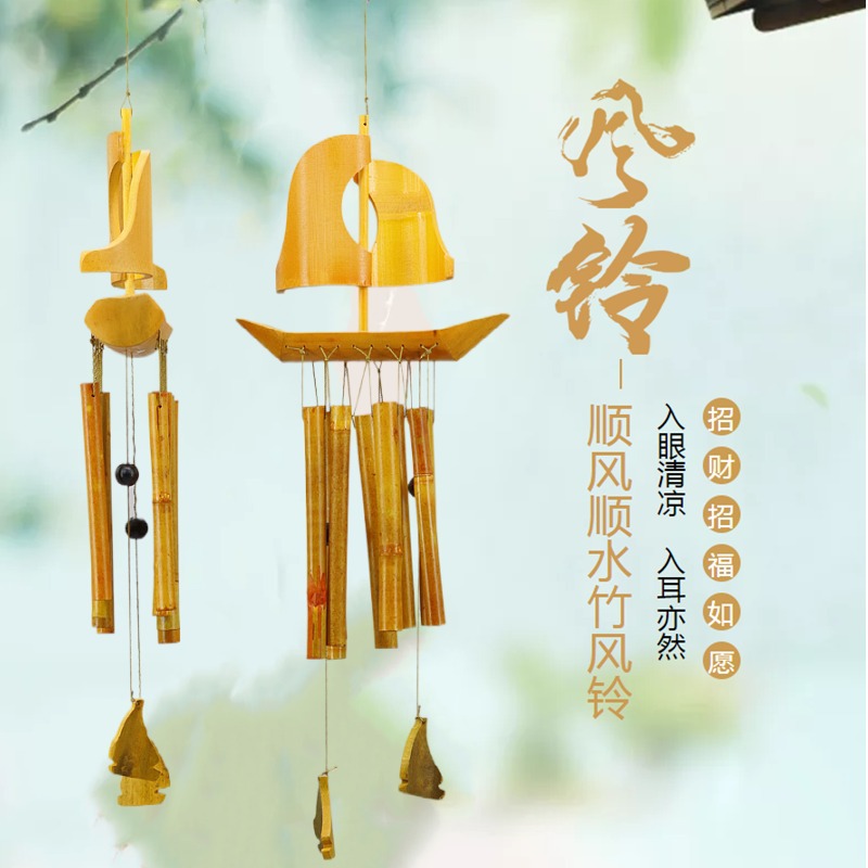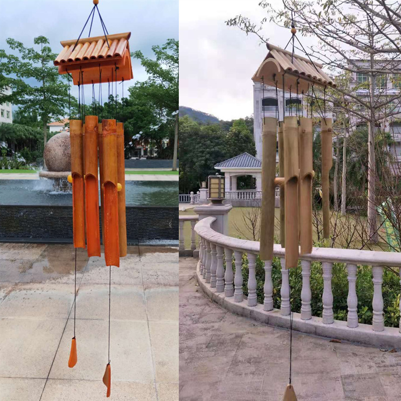 Creative bamboo wooden tube meditation music wind chimes hanging decoration outdoor bamboo art garden Japanese wind chimes home decoration pendant