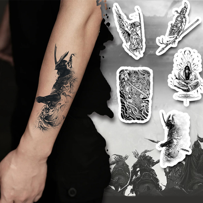 Herbal tattoo stickers for men and women waterproof lasting samurai meditator personality non-reflective semi-permanent arm chest stickers
