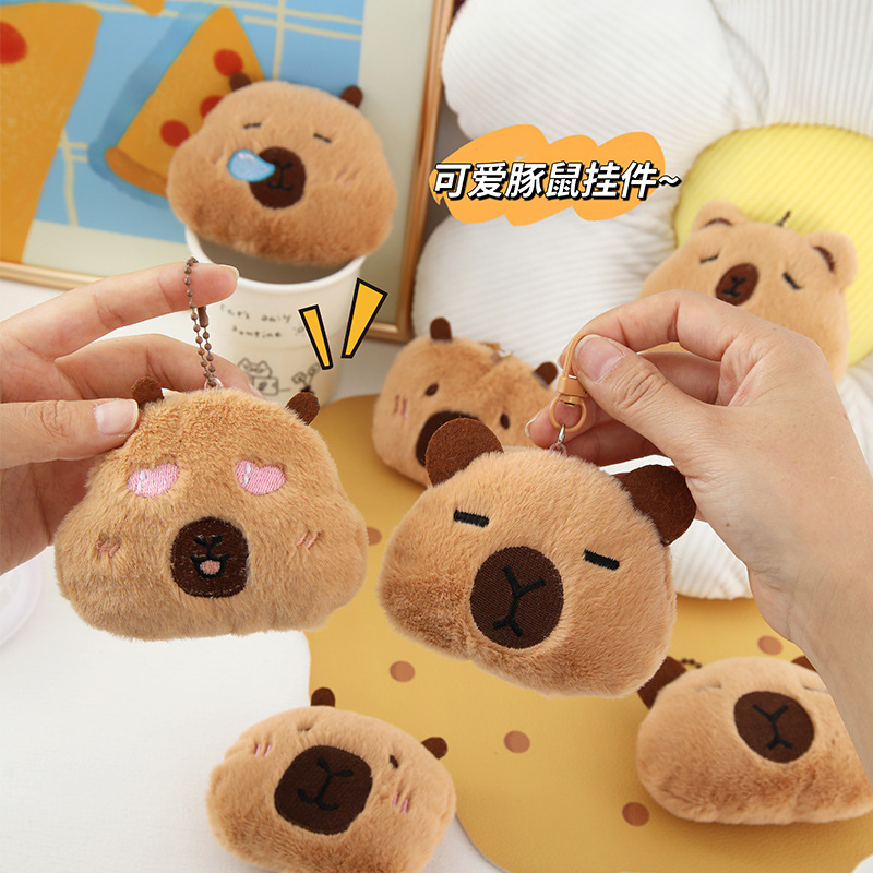 Cute and Adorable Capybara Pendant Round Guinea Pig Doll Bag Charm Decorative Keychain Keyring