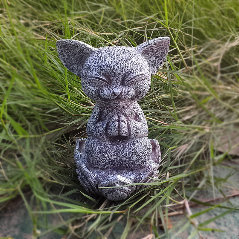 Cross-border New Style Meditation Lotus Flower Meditation Kitten Resin Ornaments Zen Cat Garden Home Decoration Resin Crafts
