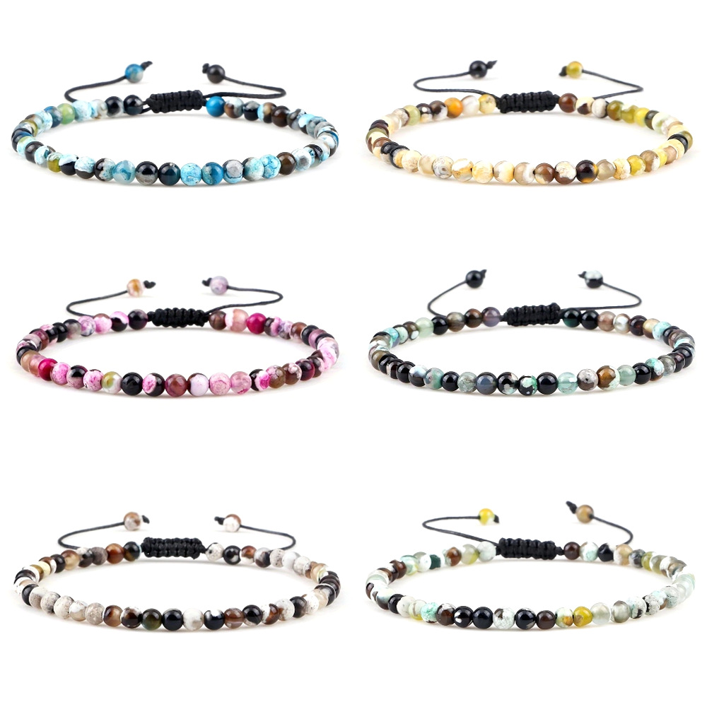 Temu Hot Selling Bohemian Versatile Bracelet Flame Stripesd Agate Braided Bracelet Men and Women Yoga Meditation Bracelet