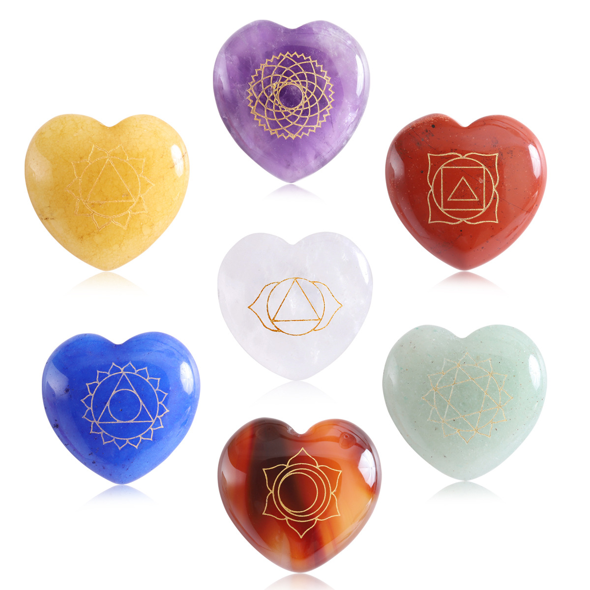 Natural crystal colorful stone love yoga energy stone suit heart-shaped semi-precious stone lettering meditation stone ornaments