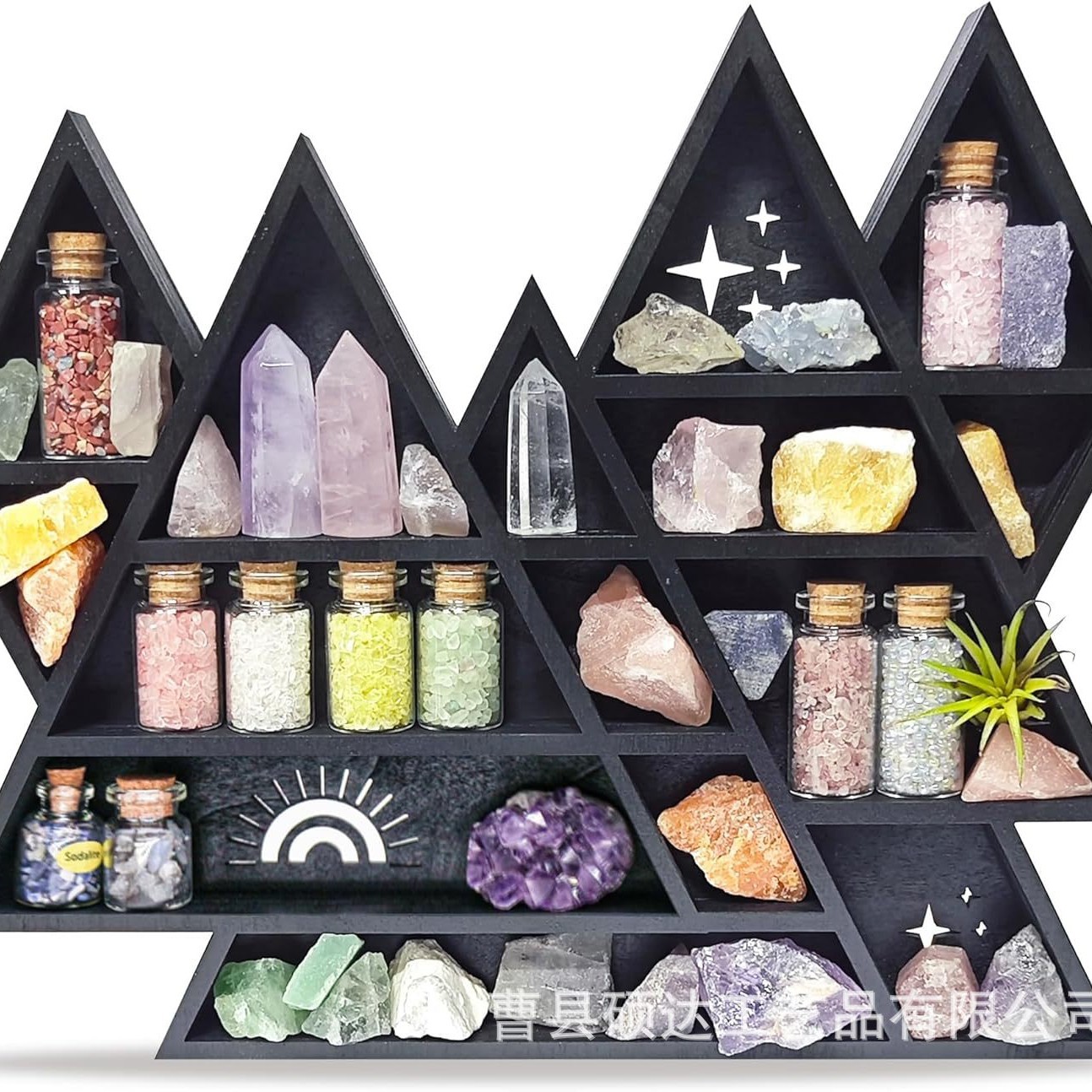 Solid Wood Multi-Grid Wall Decoration Mountain Crystal Rack Wooden Triangular Rock Gem Storage Rack Meditation Room Decoration Rack