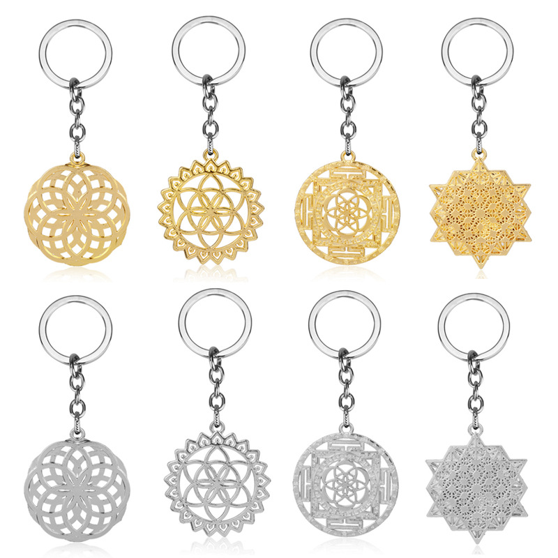Factory wholesale hollow retro Flower of Life keychain spiritual yoga meditation energy key ring chain pendant