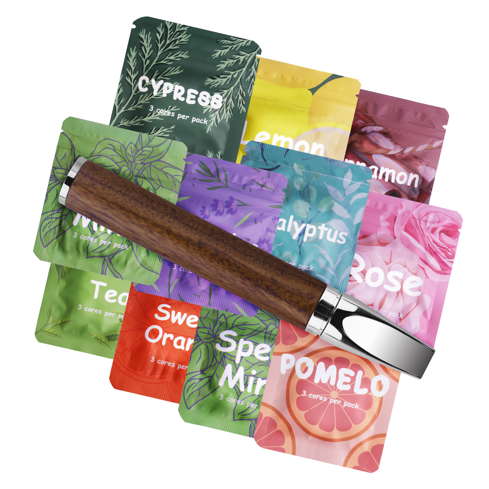 Cross-Border Popular Smoking Cessation Rosewood Maple Wood Stainless Steel Electroplated Meditation Portable Custom Essential Oil Inhaler