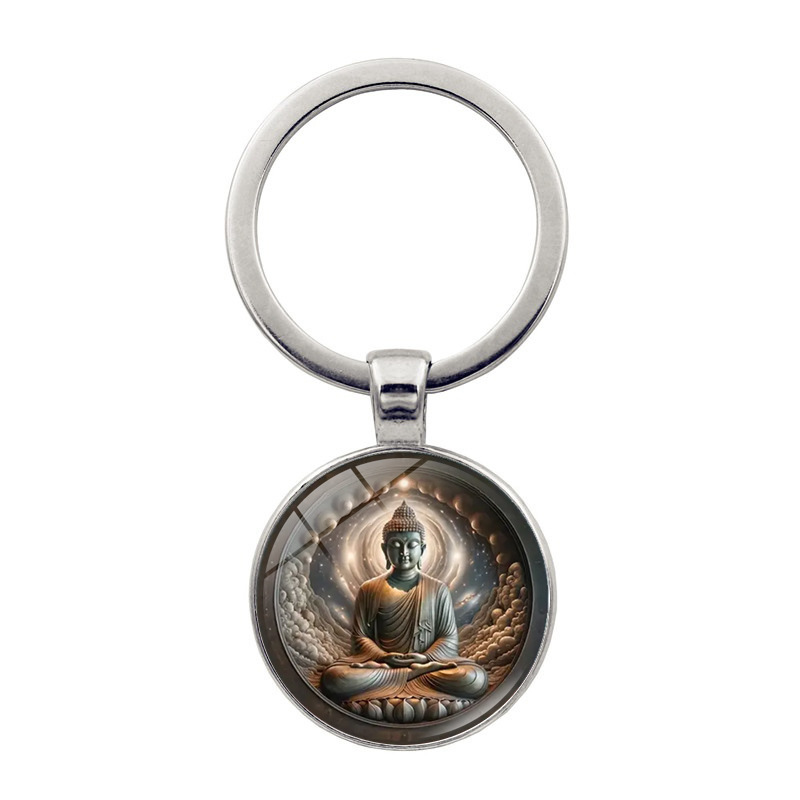Buddha Meditation Design Time Gem Keychain Pendant Creative Small Gift Metal Key Ring Ring Bag Hanging Ornaments