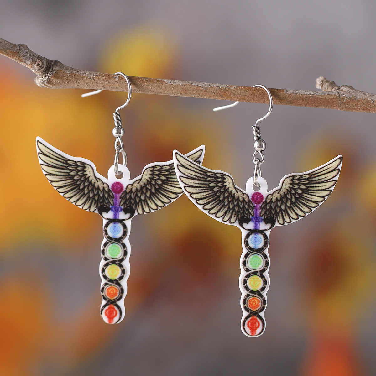 Cross-border New Angel Wings Yoga Meditation Seven-pulse Earrings Double-sided Acrylic Earrings Personalized Earrings