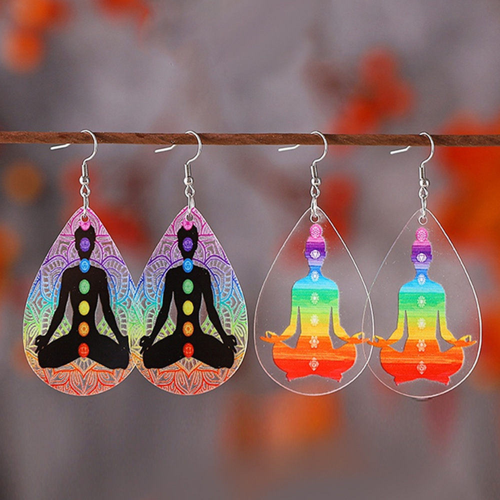 Cross-border New Zen Colorful Yoga Meditation Seven Pulse Figure Earrings Transparent Acrylic Water Drop Earrings Earrings