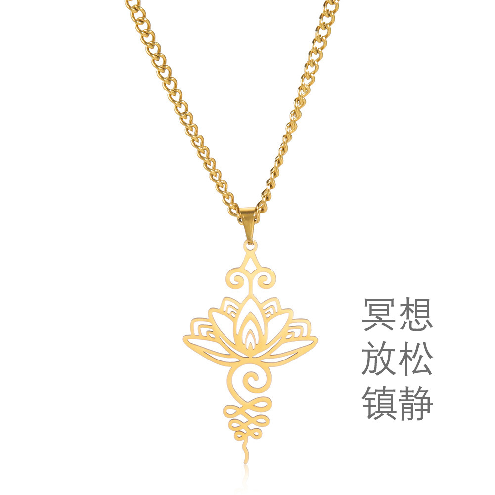 Cross-border titanium steel lotus ethnic style Han element meditation relaxation calm personality pendant necklace titanium steel niche earrings