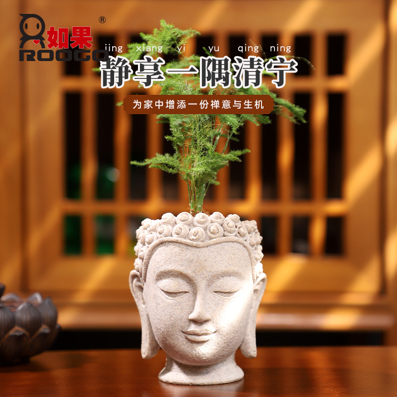 Cross-Border Creative Buddha Head Resin Flower Pot Home Desktop Decoration Potted Ornaments Simple Green Plant Gardening Flower Ware Wholesale
