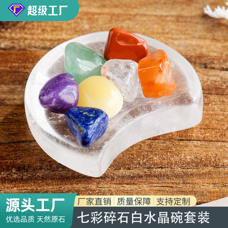Foreign Trade Natural White Crystal Moon Bowl Colorful Gravel Gem Set Home Office Meditation Degaussing Decoration Ornaments
