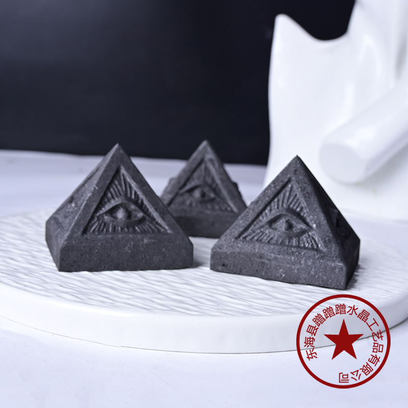 Natural Russian Secondary Graphite Eye of God Pyramid Ornament Black Crystal Meditation Energy Mineral Ornament