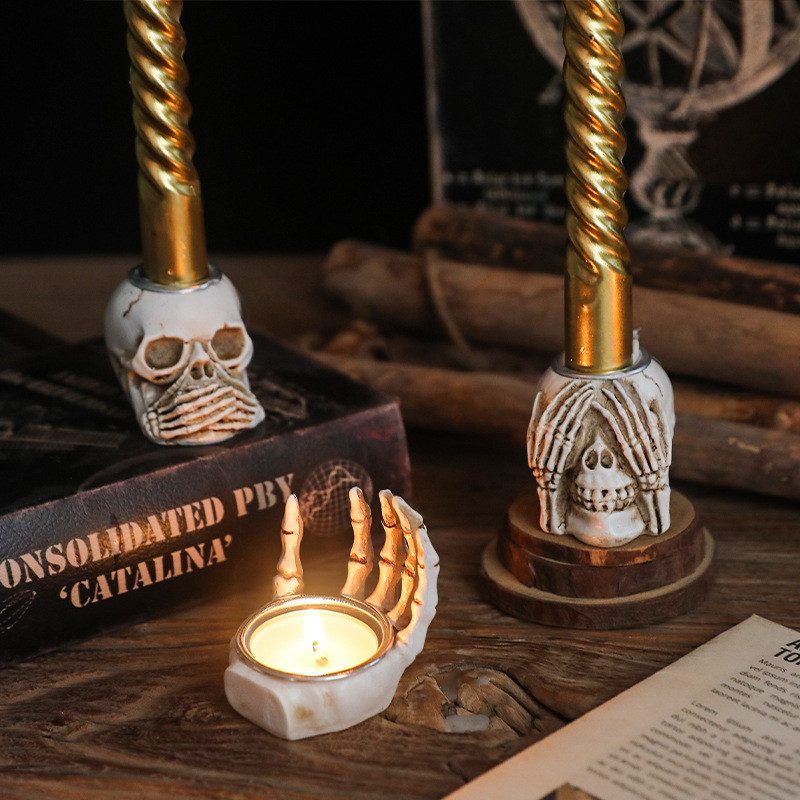 Scandinavian Skull Palm Model Candlestick Halloween Decoration Resin Ornaments Secret Room Haunted House Atmosphere Layout Props