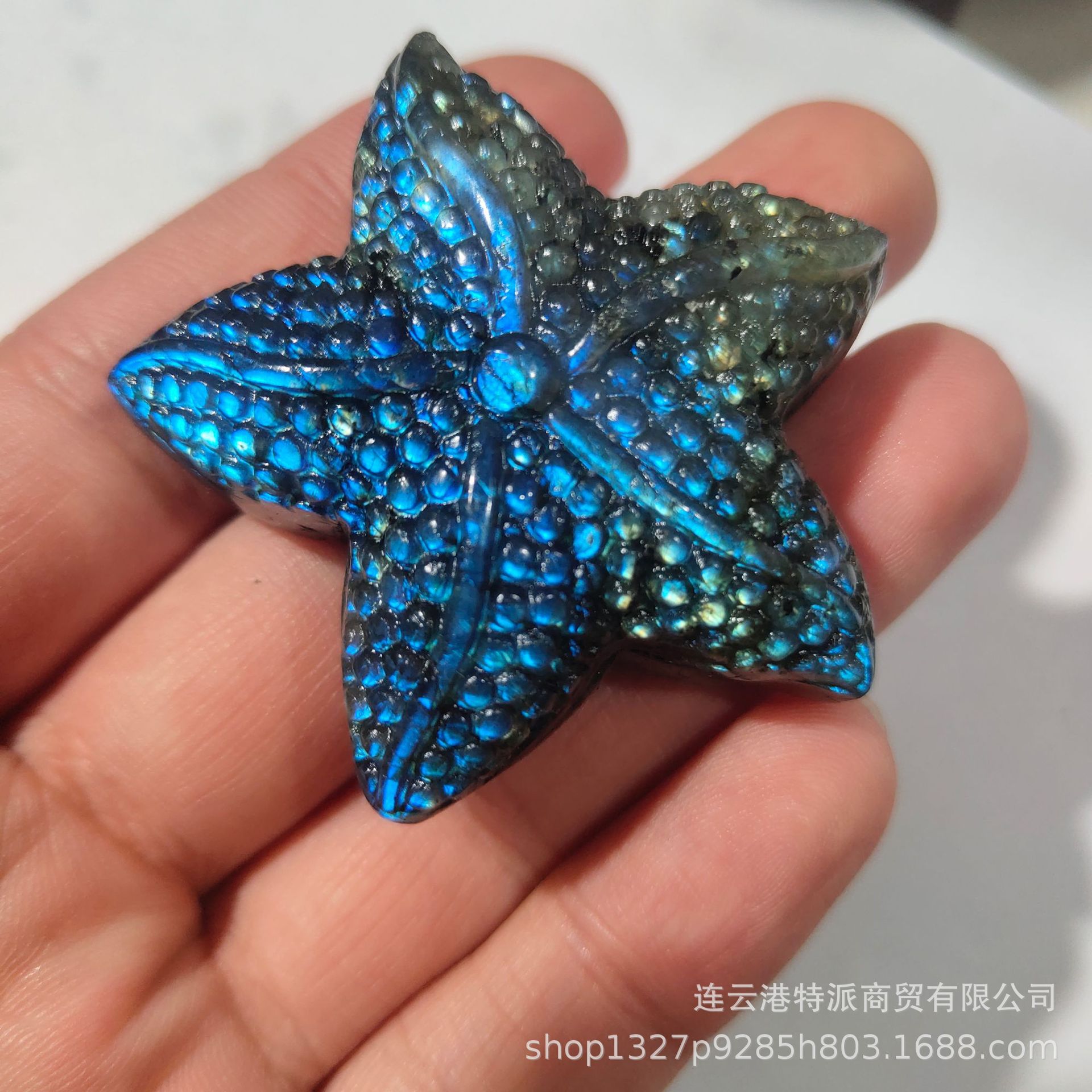 Natural Lava Stone Crystal Carving Blue Starfish European and American Decorative Meditation Crystal Ornaments