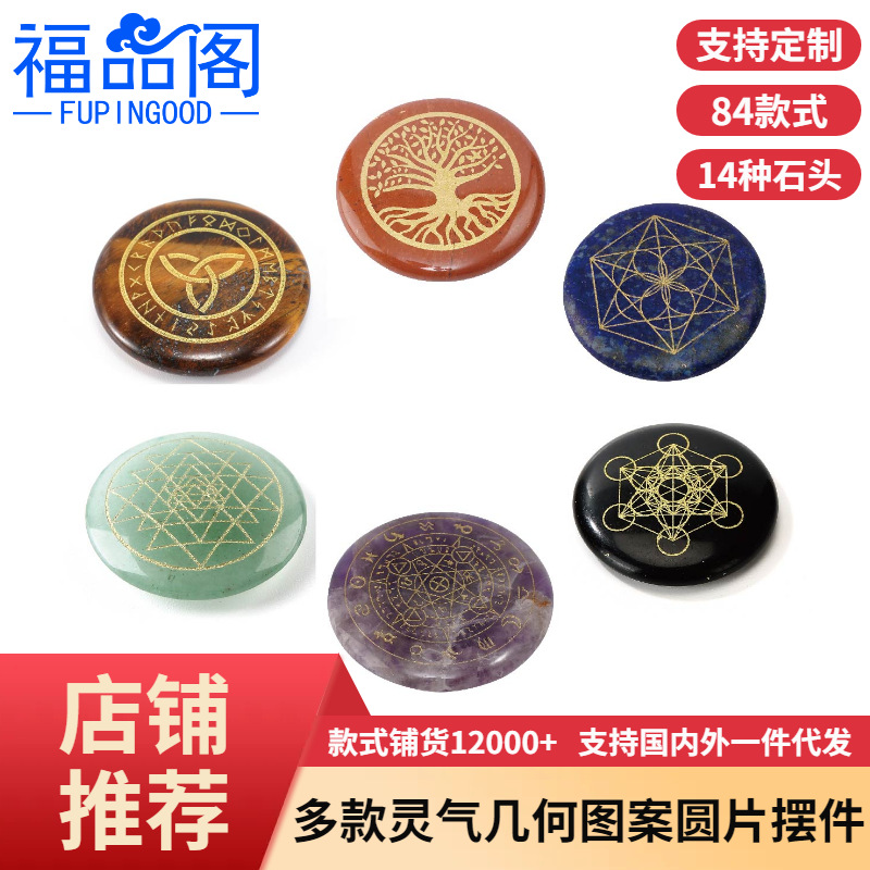 Cross-Border Hot-Selling Natural Crystal Carved Element Symbols Geometric Pattern Jewelry Personalized Creative Crystal Raw Stone Ornaments