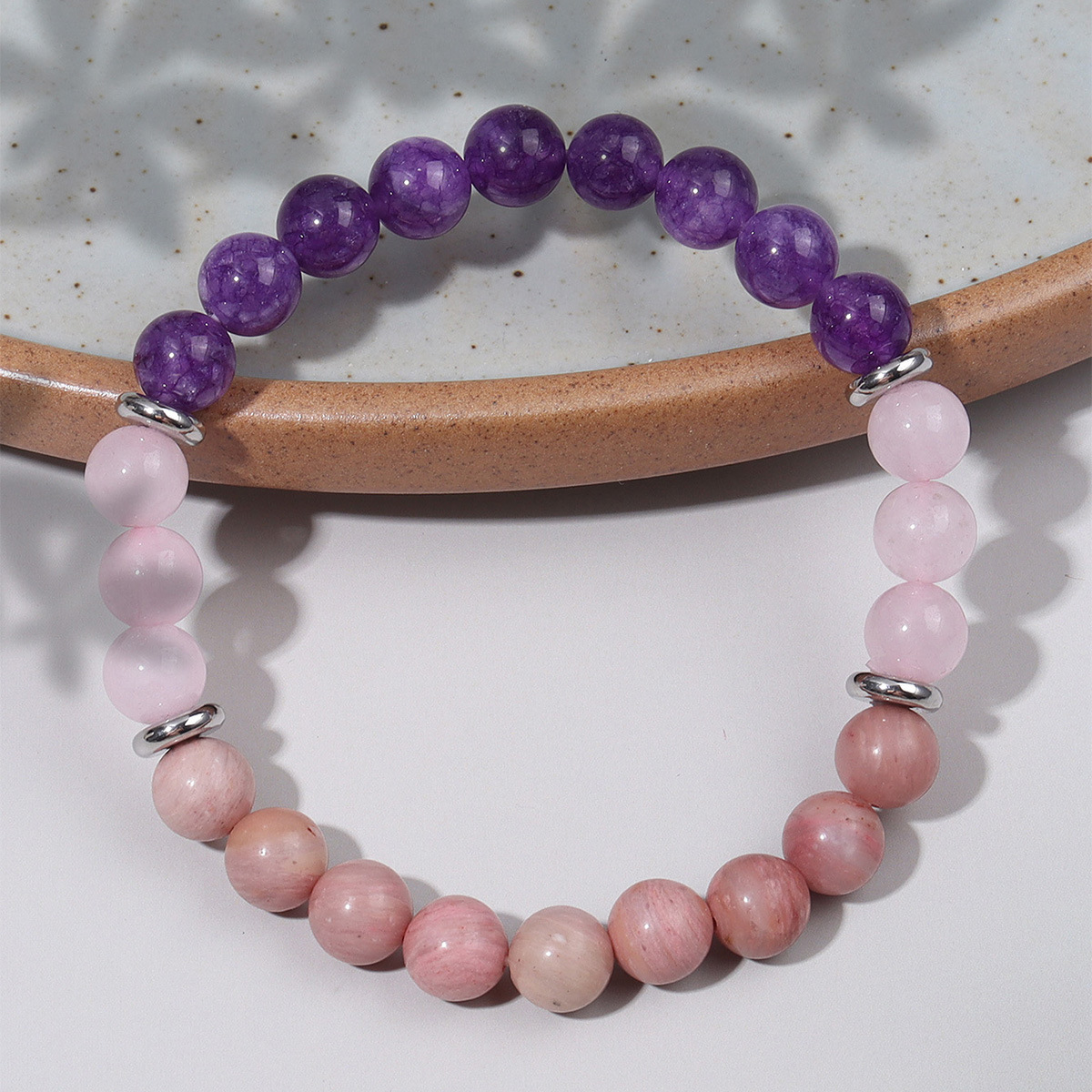 Youjia Jewelry Natural Stone Beaded Bracelet Red Pattern Rose Quartz Amethyst Women's Yoga Meditation Energy Bracelet Wholesale