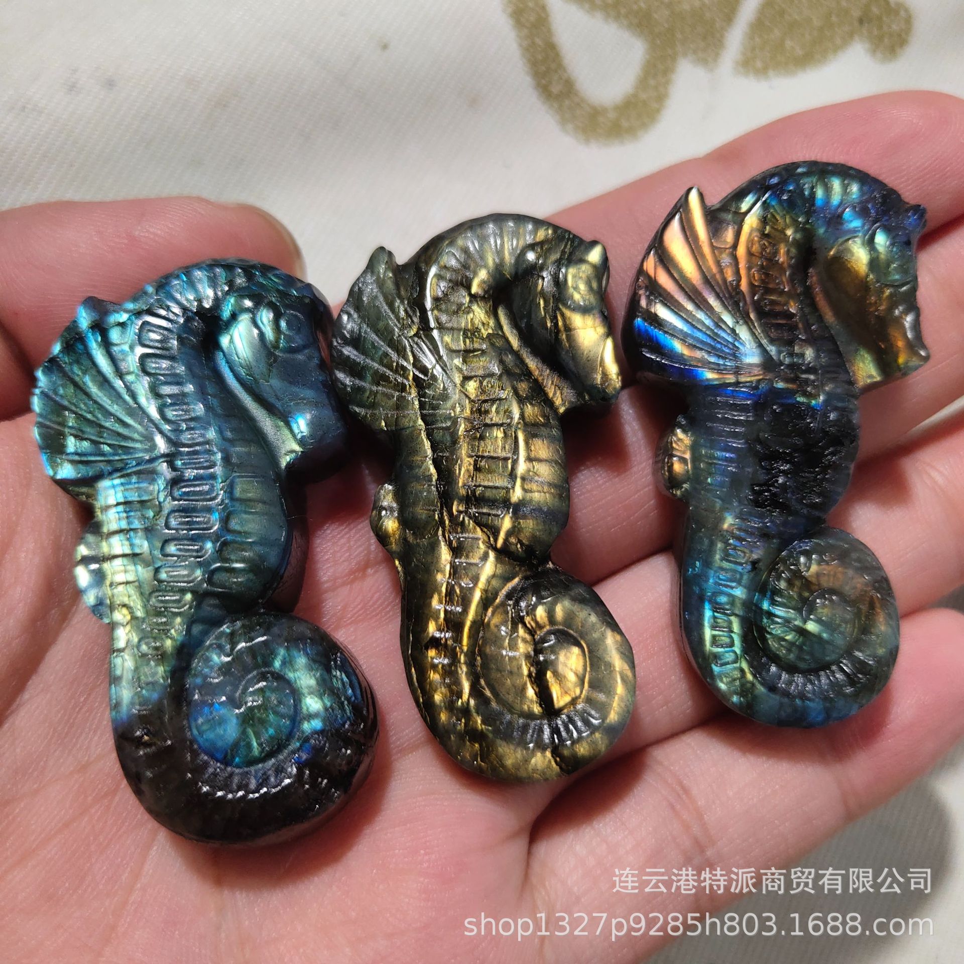 Natural Lavolite Original Stone Crystal Carving Hippocampus Taiwan Southeast Asia Europe and America Decoration Meditation Ornaments