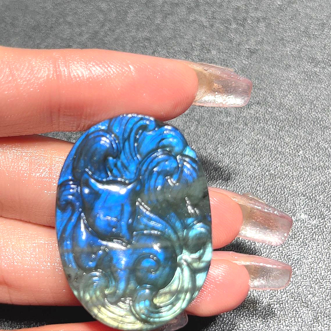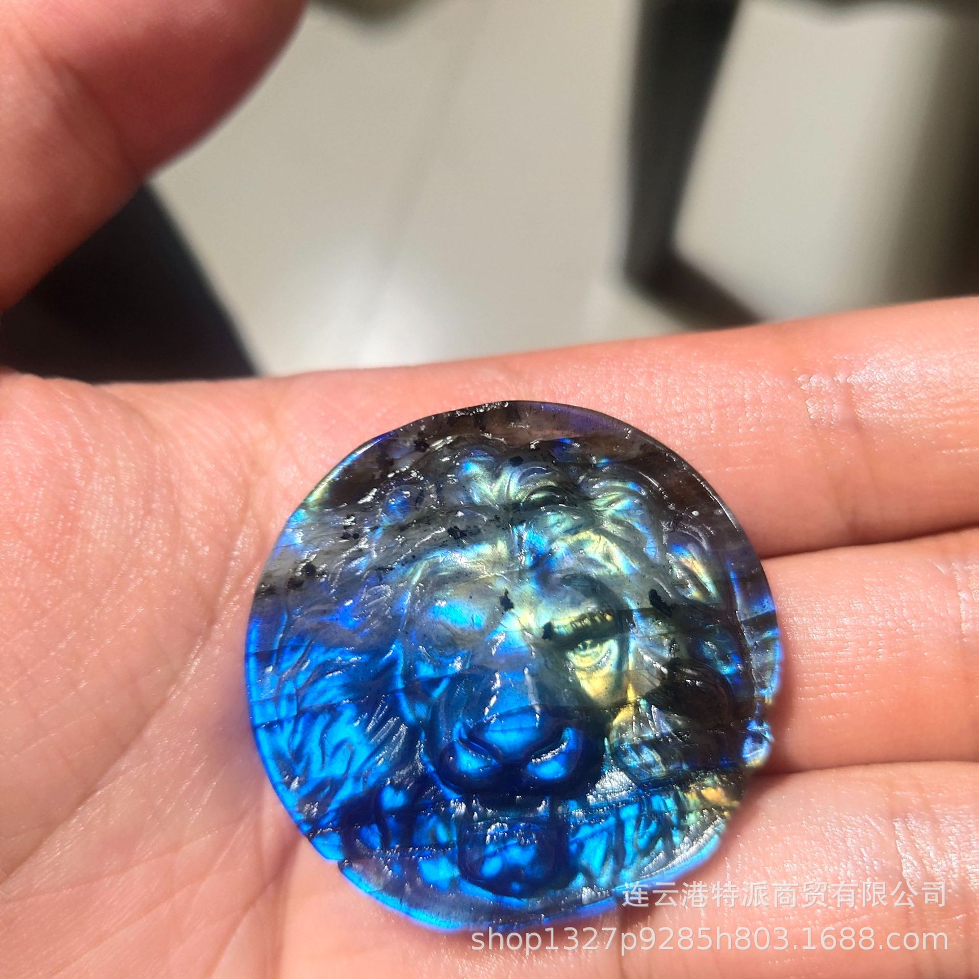 Natural Lavolite Original Stone Crystal Carving Blue Lion Head European and American Decorative Meditation Crystal Pendant