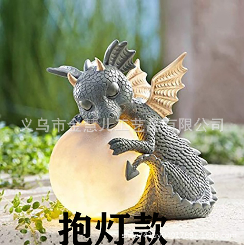 Cross-Border little dinosaur meditation statue heantian open hand holding lamp dinosaur garden decoration resin crafts ornaments
