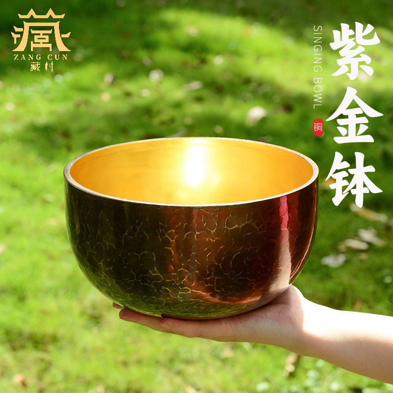Xizang Purple Gold Bowl Yoga Bowl Sound Bowl Healing Meditation Copper Chime Bowl Singing Bowl Copper Bowl Ornament with Tutorial