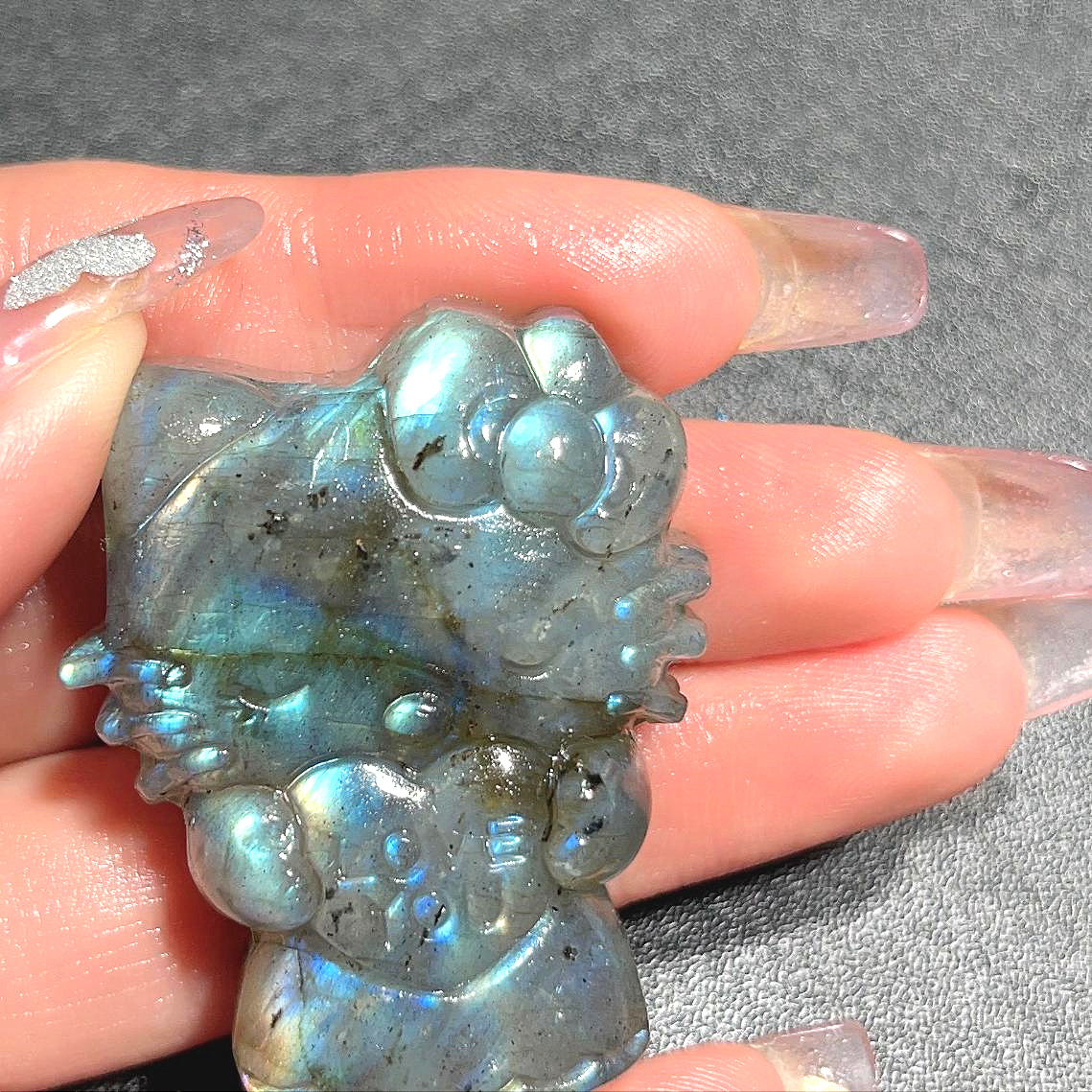 Natural Lavolite Original Stone Crystal Carving Hello Kitty Animal Europe and America Southeast Asia Decorative Meditation Pendant Ornaments