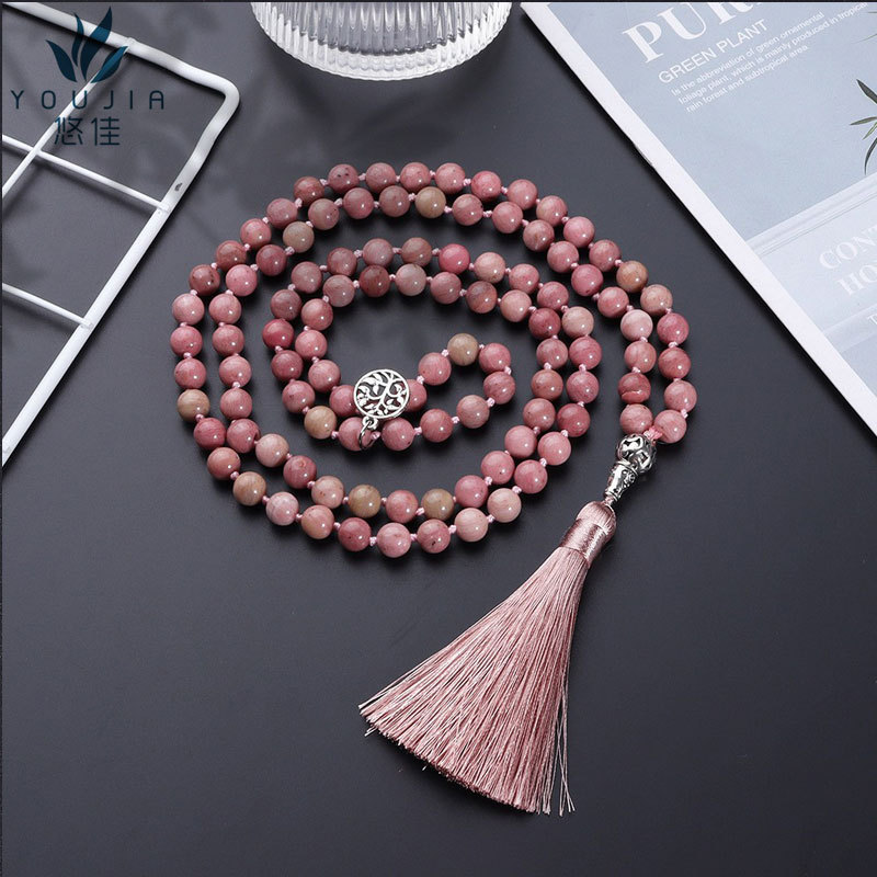 Youjia Jewelry 108 Rhodolite Knot Necklace New Chinese Style Ancient Style Handheld Rosary Meditation Beaded Necklace