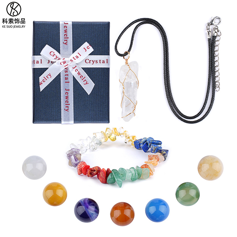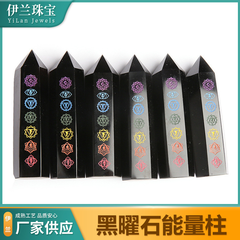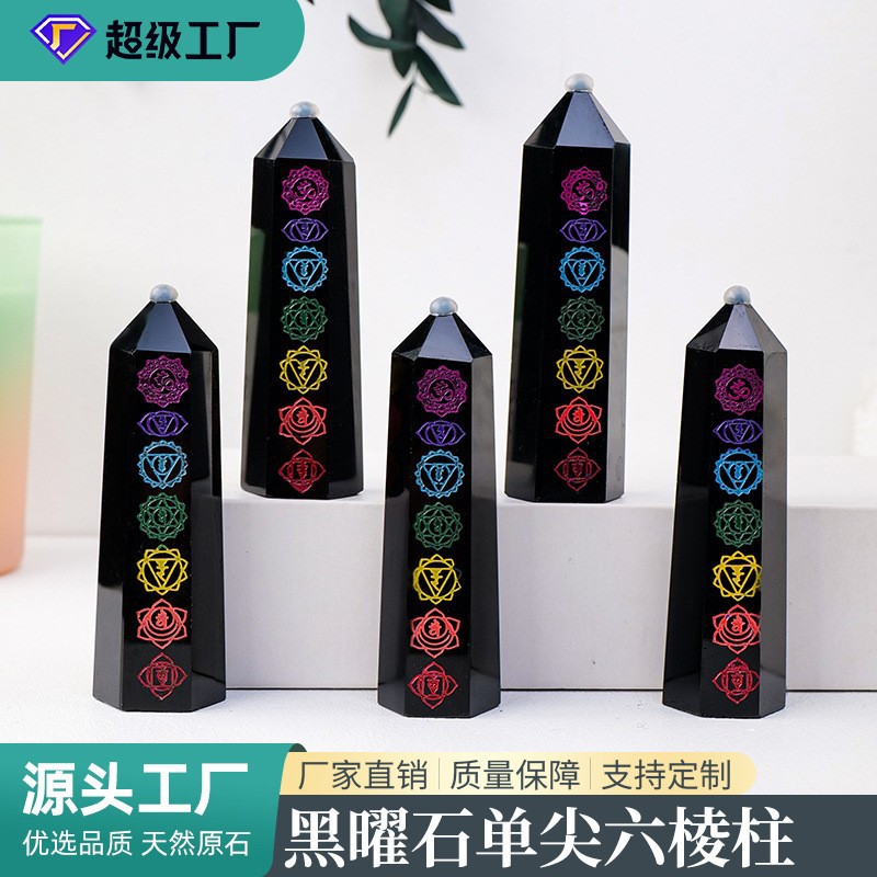 Natural obsidian Crystal hexagonal prism cross-border seven-color Chakela home decoration meditation energy pillar ornaments