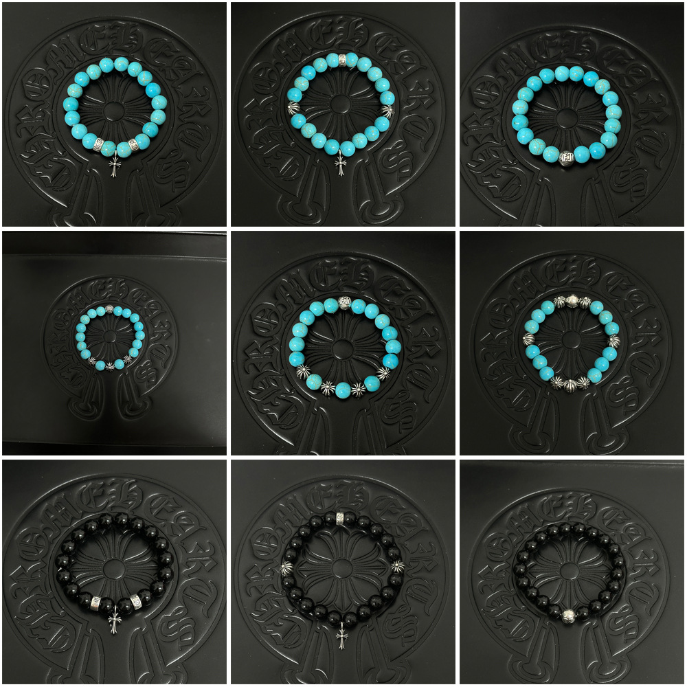 Chkrota trendy cruciferous round beads eight beads obsidian turquoise silver plated bracelet lovers same style