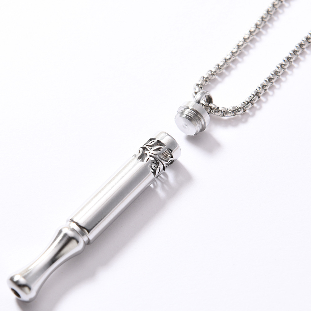 Cross-Border New Meditation Breathing Decompression Pendant Necklace Stainless Steel Meditation Small Waist Round Tube Whistle Jewelry Gift