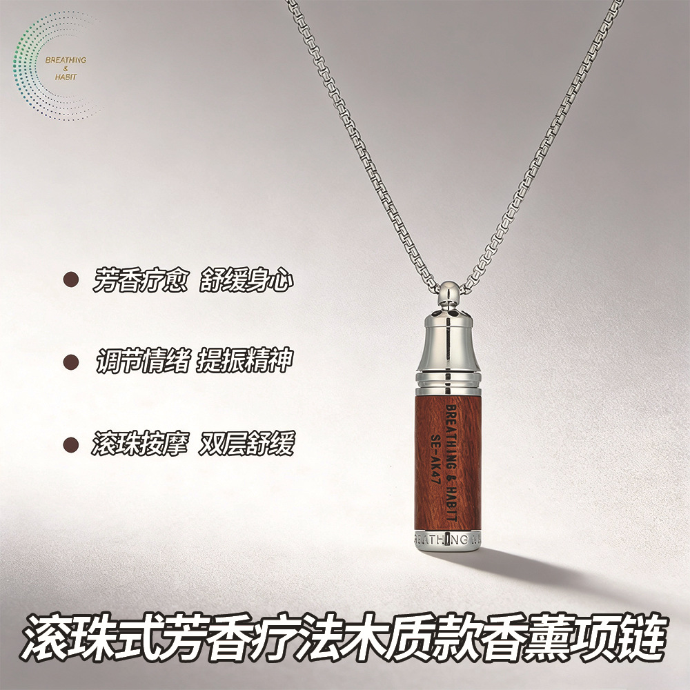 Cross-Border Solid Wood Smoking Cessation Whistle Necklace Meditation Mindfulness Whistle Titanium Steel Necklace Regulates Breathing and Relieves Stress Pendant
