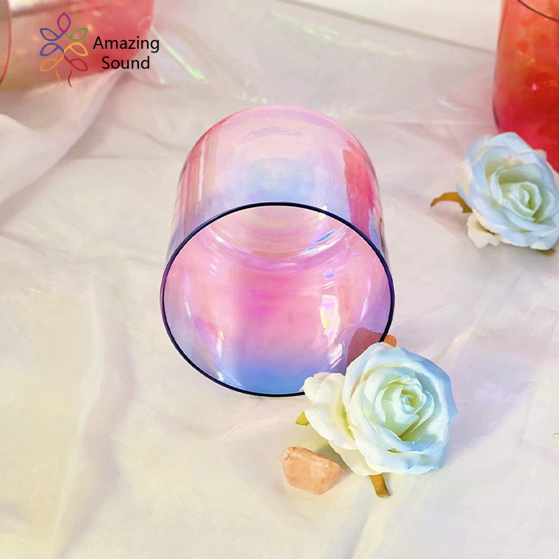 Pink Color Gradient Blue Quartz Crystal Singing Bowl for Sound Meditation Bowl Crystal Bowl Music Bowl Portable