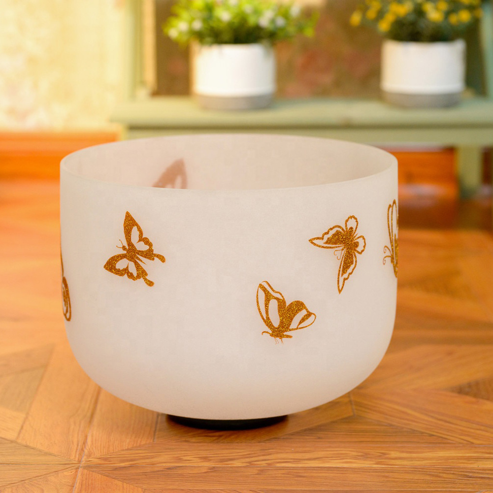 Butterfly design factory direct golden onion powder white chanting bowl meditation yoga quartz bowl decompression meditation crystal bowl