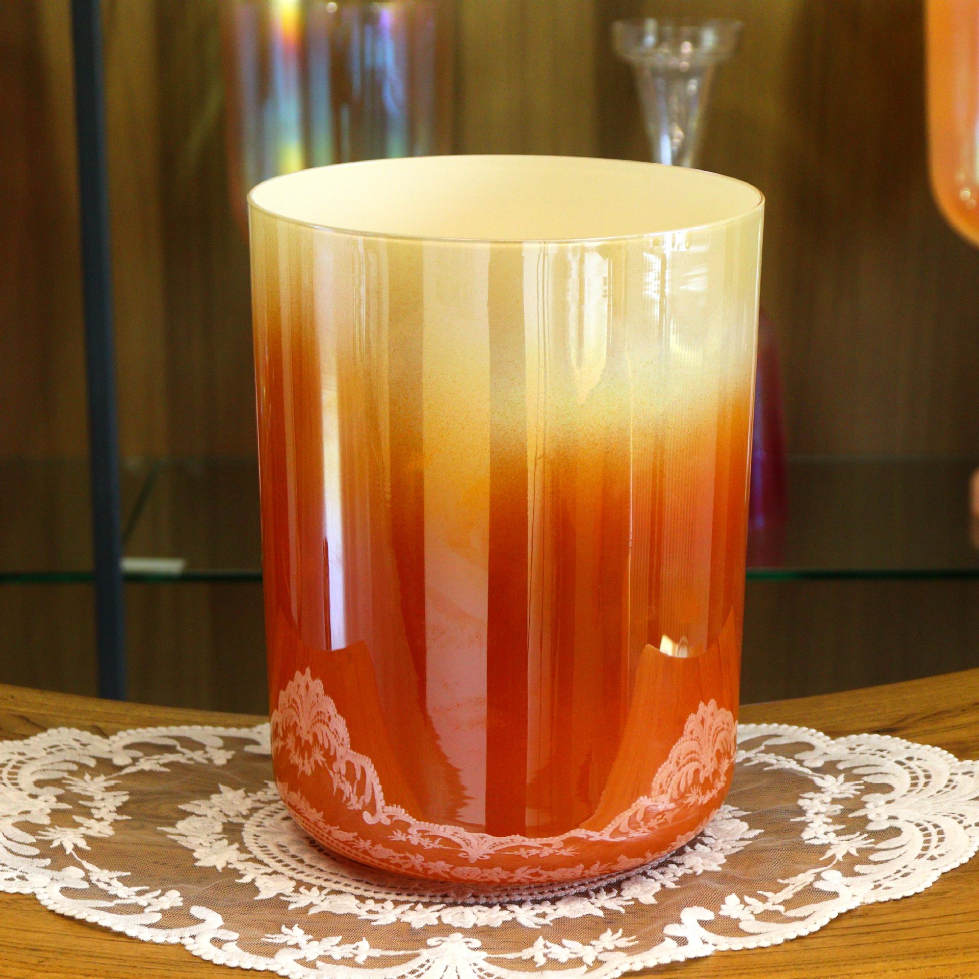Orange Frosted Aurora Crystal Singing Bowl Music Bowl Crystal Bowl Meditation Slow Rhythm Accurate Tone Music Healing