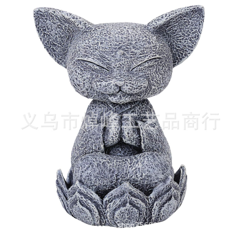 Cross-border new meditation Lotus meditation kitten resin ornaments meditation cat garden home decoration resin crafts