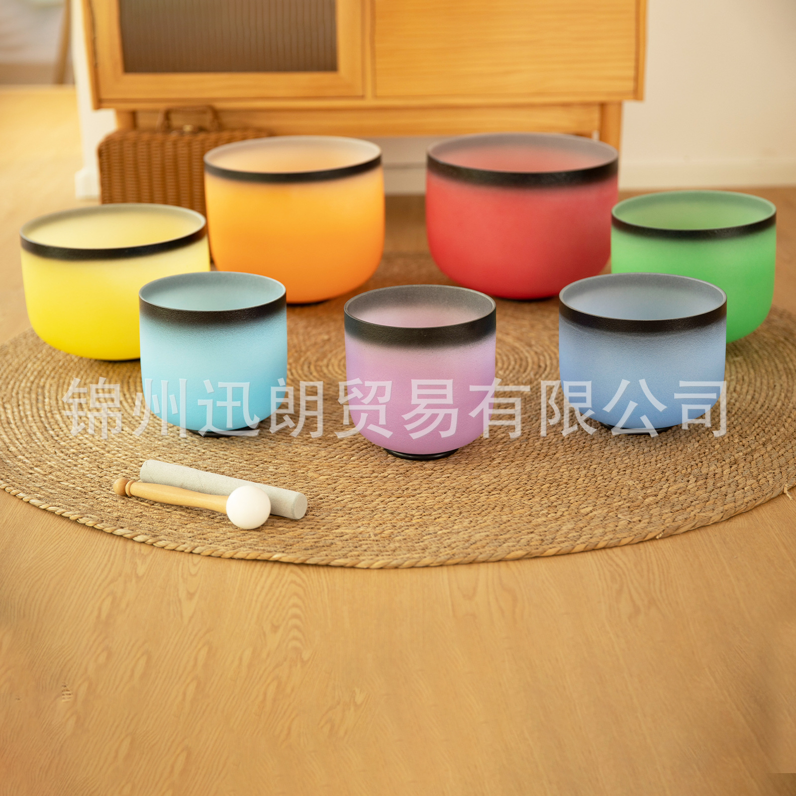 Export Colorful Professional Crystal Bowl Colorful Seven Tone Tone Tone Therapy Praise Bowl Yoga Meditation Buddha Tone Bowl Entry Instrument Set