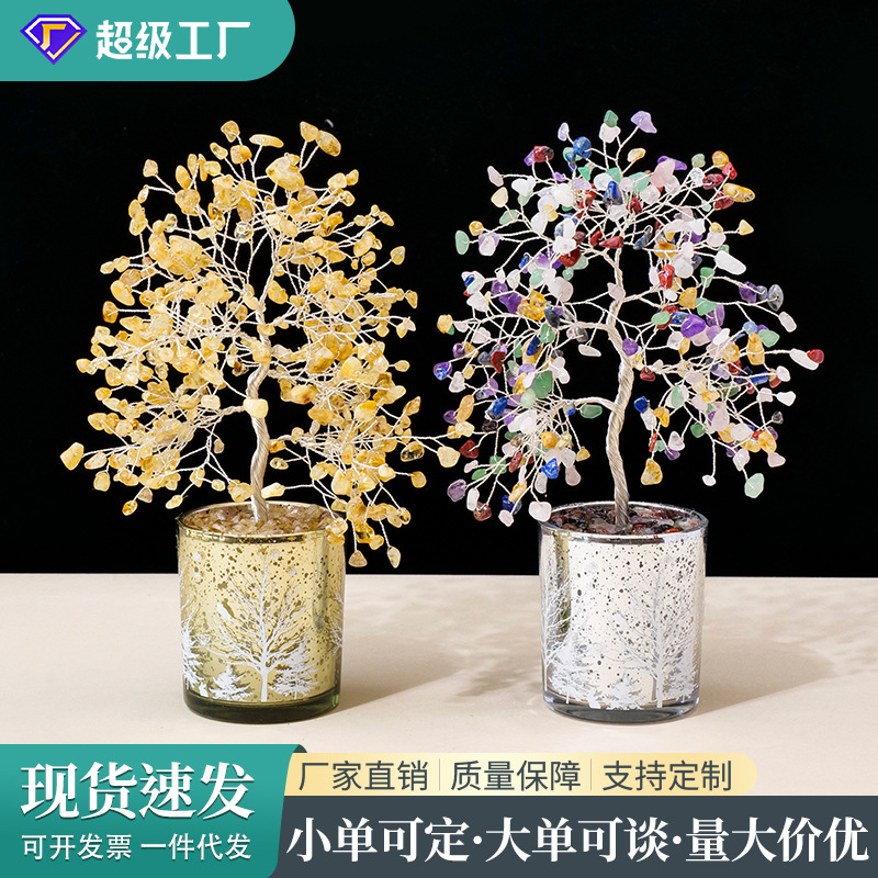 Cross-Border Natural Crystal Tree Christmas Glass Life Tree Citrine Fortune Tree Yoga Meditation Crystal Crafts