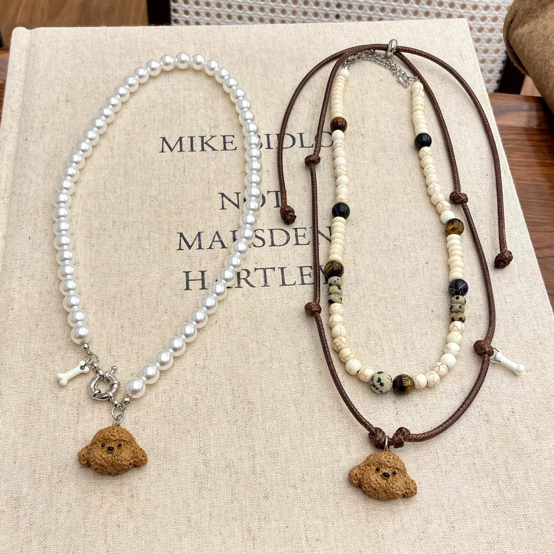 Cross-Border Puppy Fun Enamel Clavicle Chain Versatile Jewelry Original Niche Sweet and Cool Necklace Women's Pearl Autumn and Winter Accessories