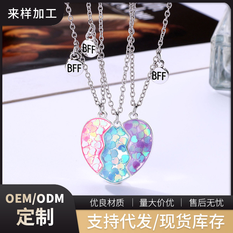 Manufacturer Supplies Kidsren's Necklaces Dolphin Dripping Oil Creative Magnet Splicing Heart Necklace Splicing Heart Gifts