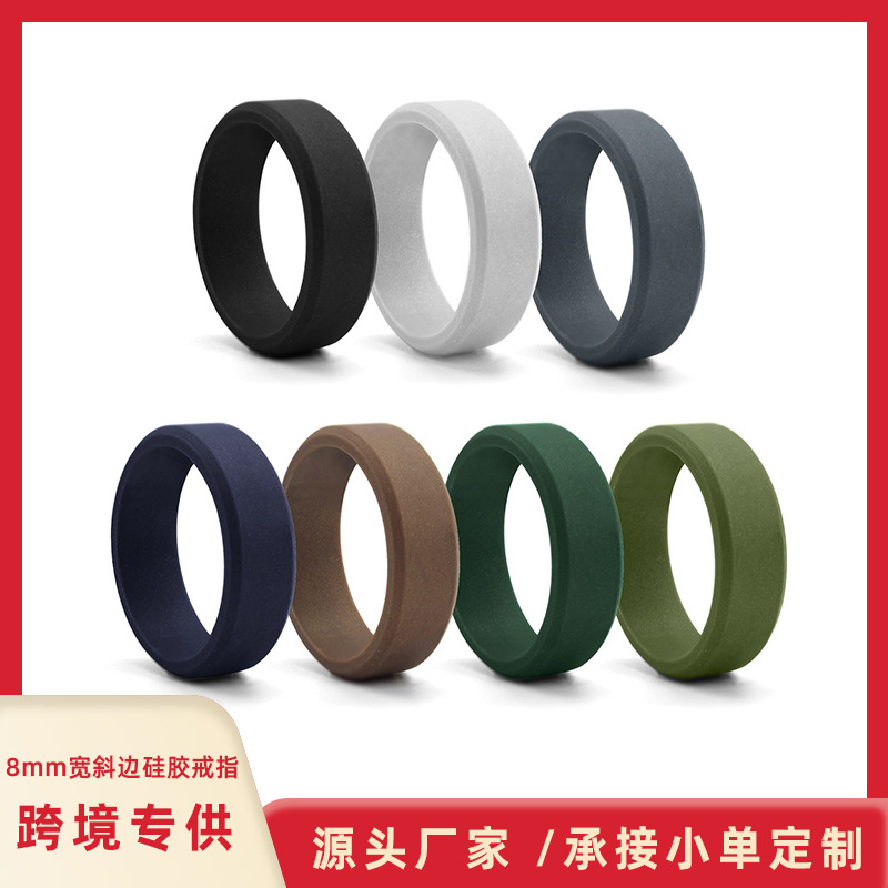 Amazon's New 8mm Beveled Silicone Ring European and American Ring Men's Outdoor Sports Ring