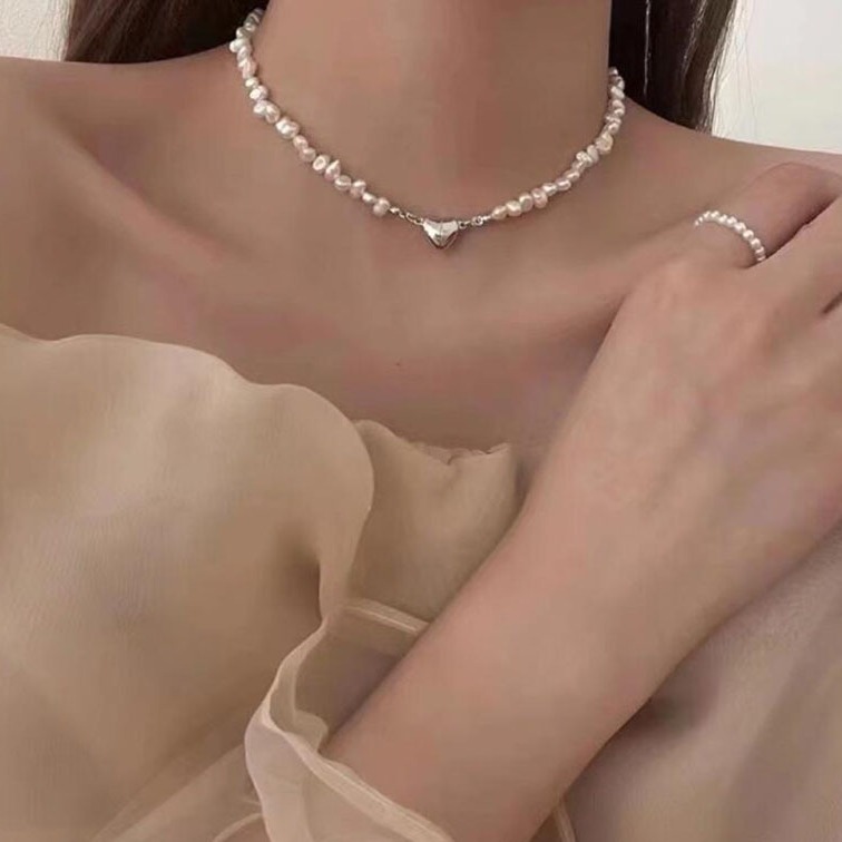 Special-Shaped Baroque Pearl Necklace Niche Design Heart Magnet Buckle Beaded Necklace Women Wholesale Ins Style