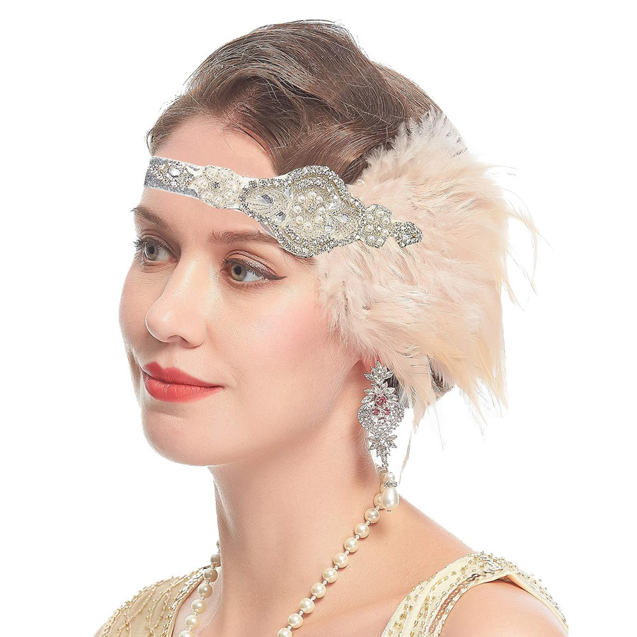 1980S European and American Retro Feather Headdress Flying Wave Headband Earrings Necklace Combination Masquerade Bachelorette Party