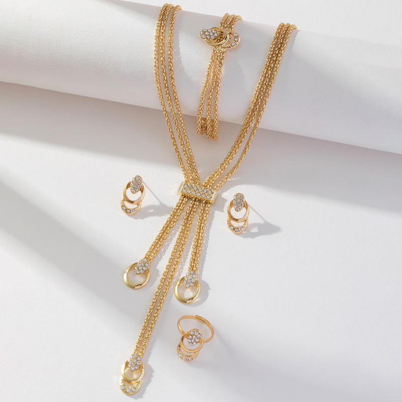 Middle East Dubai Cross-Border Jewelry High-End Jewelry 4-Piece Necklace Jewelry Snake-Shaped Zircon Jewelry Set for Women