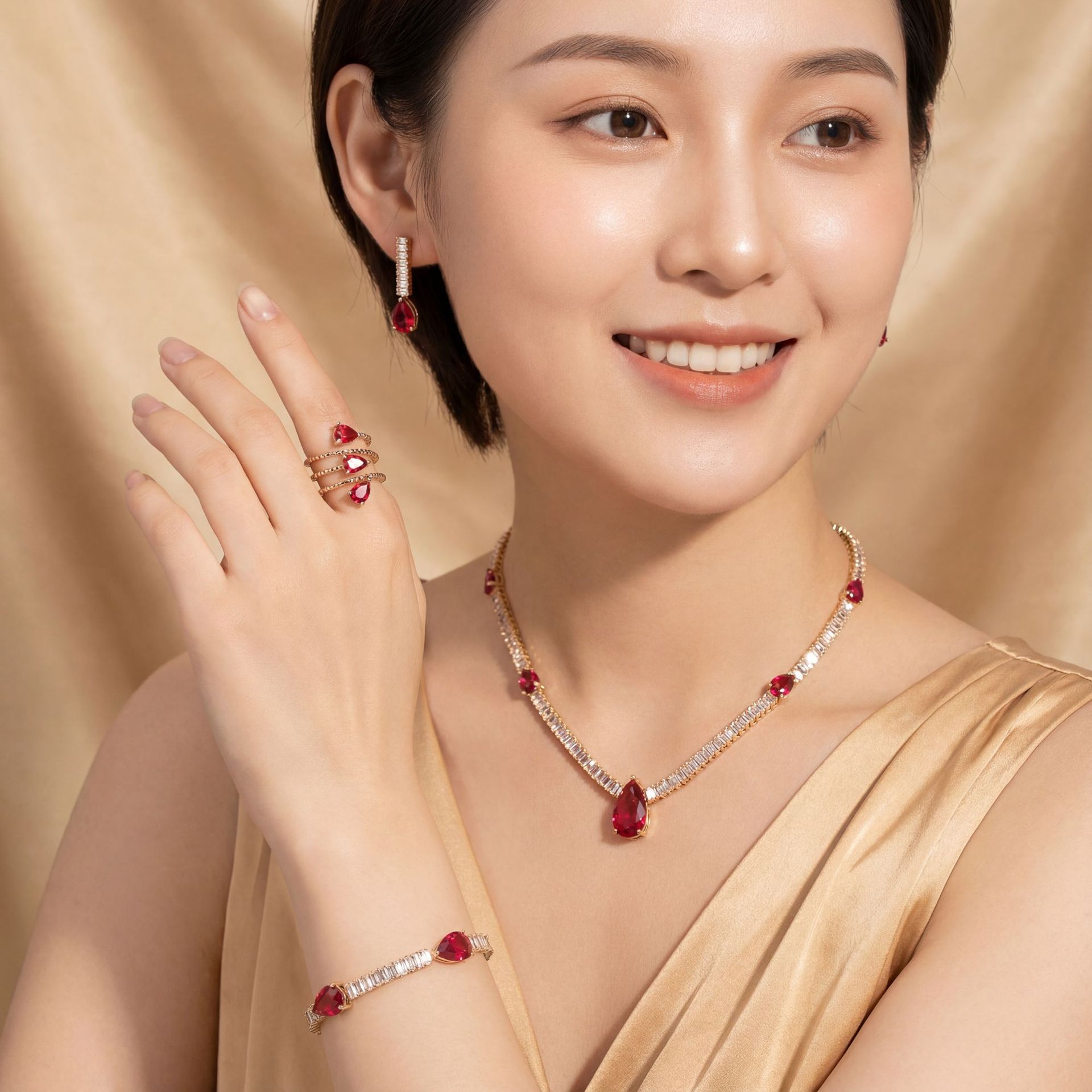Cross-Border Hot-Selling Fashion Luxury Jewelry Set 18K Real Gold with Colored Gemstone Dress Set Chain Manufacturer Supply