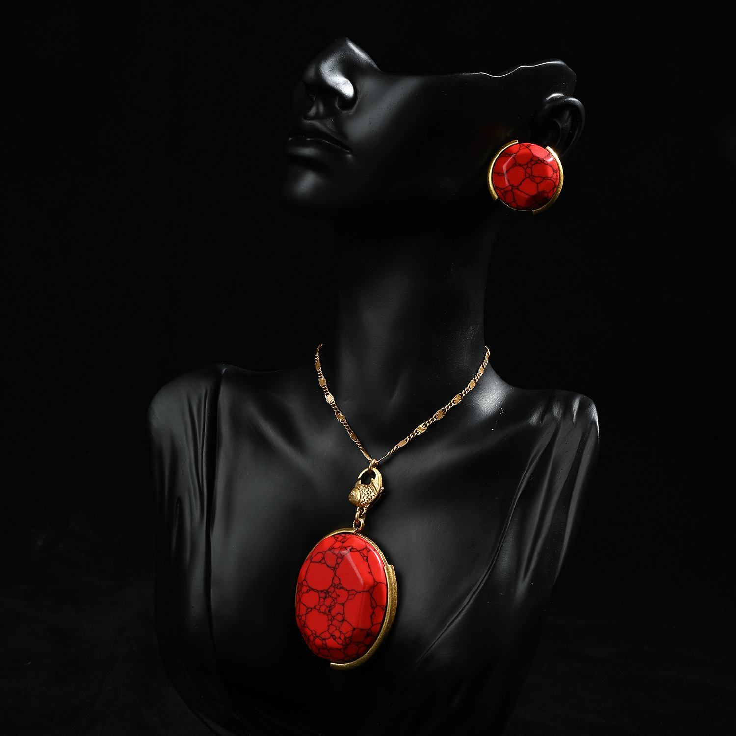 Vintage Jewelry Red Turquoise Necklace Earrings Jewelry Artistic Retro Long Sweater Chain Versatile Style