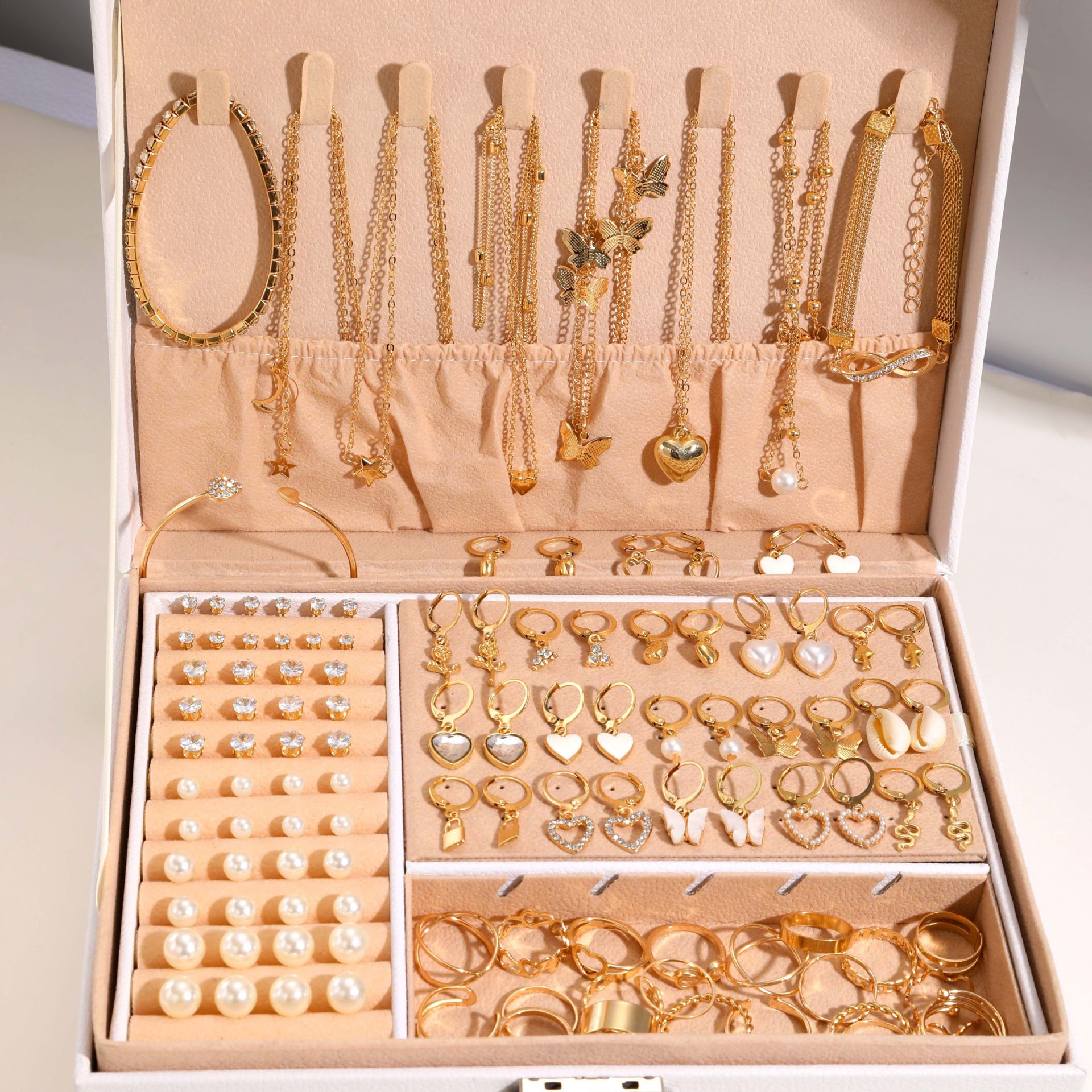 European and American Cross-border Amazon 53-piece Pearl Jewelry suit High-grade Multi-layer Necklace Eye of Horus Ring