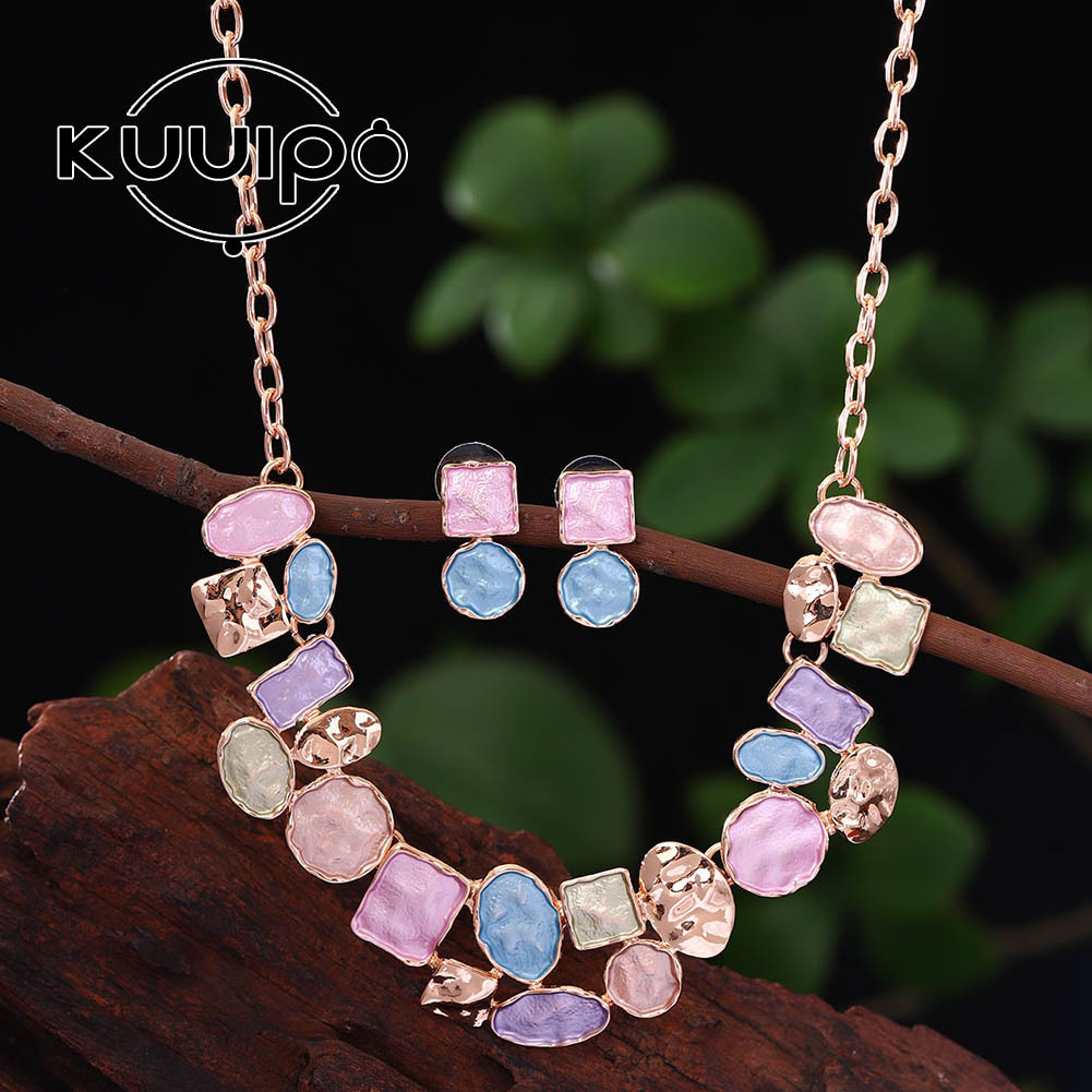 Cross-border New Oil Dropping Enamel Color Zinc Alloy Irregular Geometry High Elegant All-match Earrings Necklace Two-piece Set