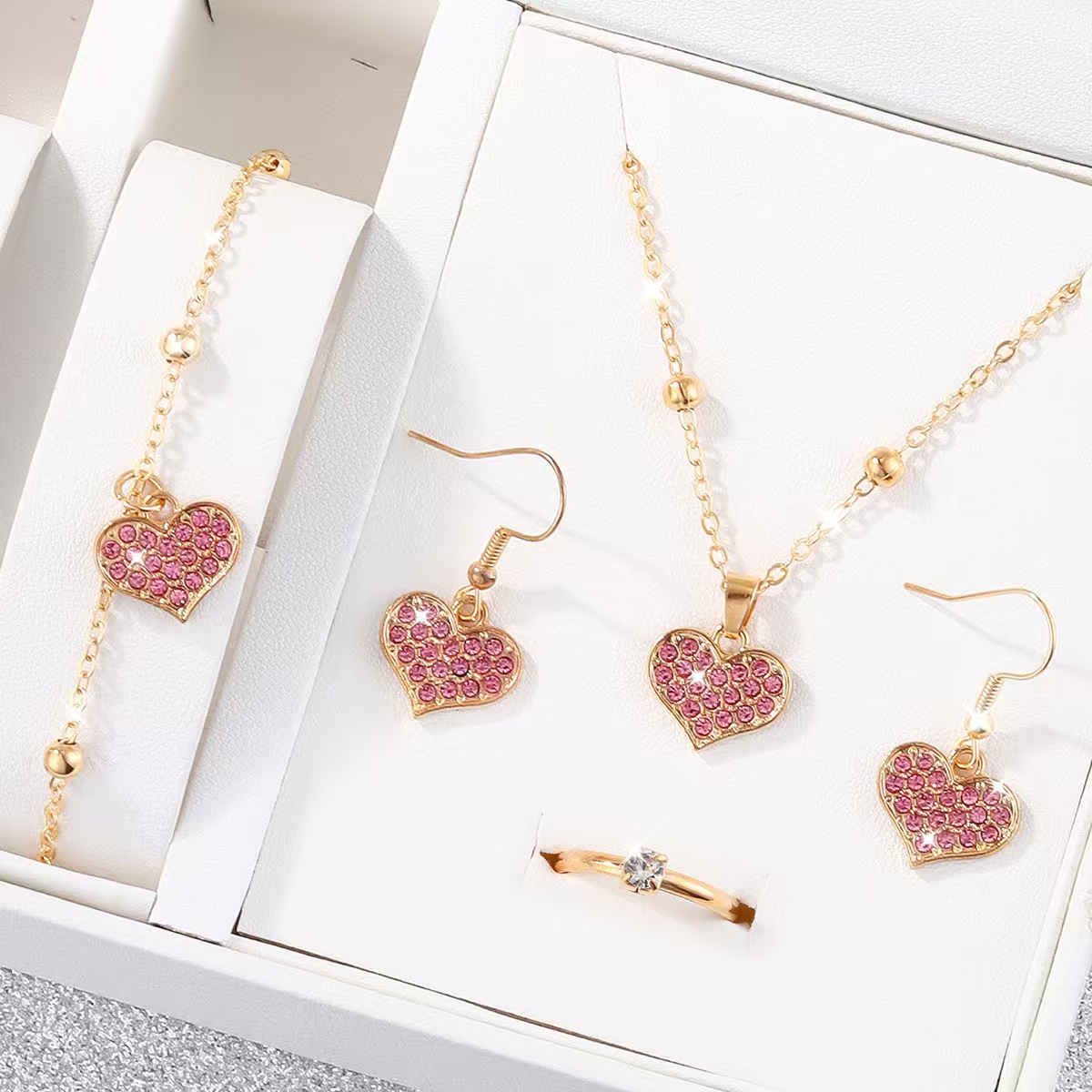 New Cross-Border European and American Middle Eastern Simple Love Necklace Jewelry Set Accessible Luxury Style Bridal Peach Heart Jewelry 3-Piece Set