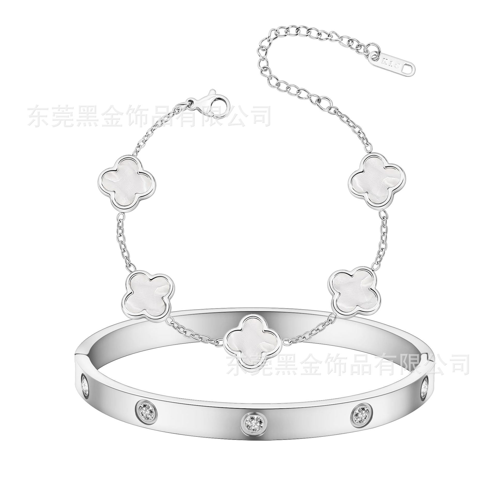 Amazon BS titanium steel ten diamond bracelet four-leaf clover bracelet combination does not fade jewelry set decorations wholesale