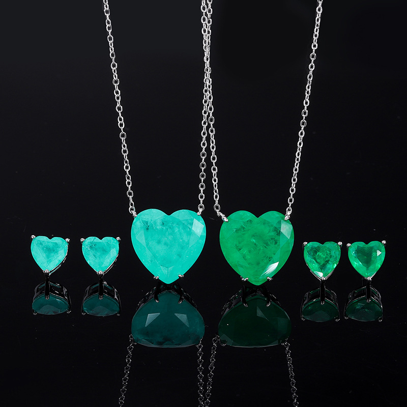 European and American Style Paraiba Sapphire Pendant Women's Cross-border Hot Selling Jewelry Set Emerald Love Necklace Earrings