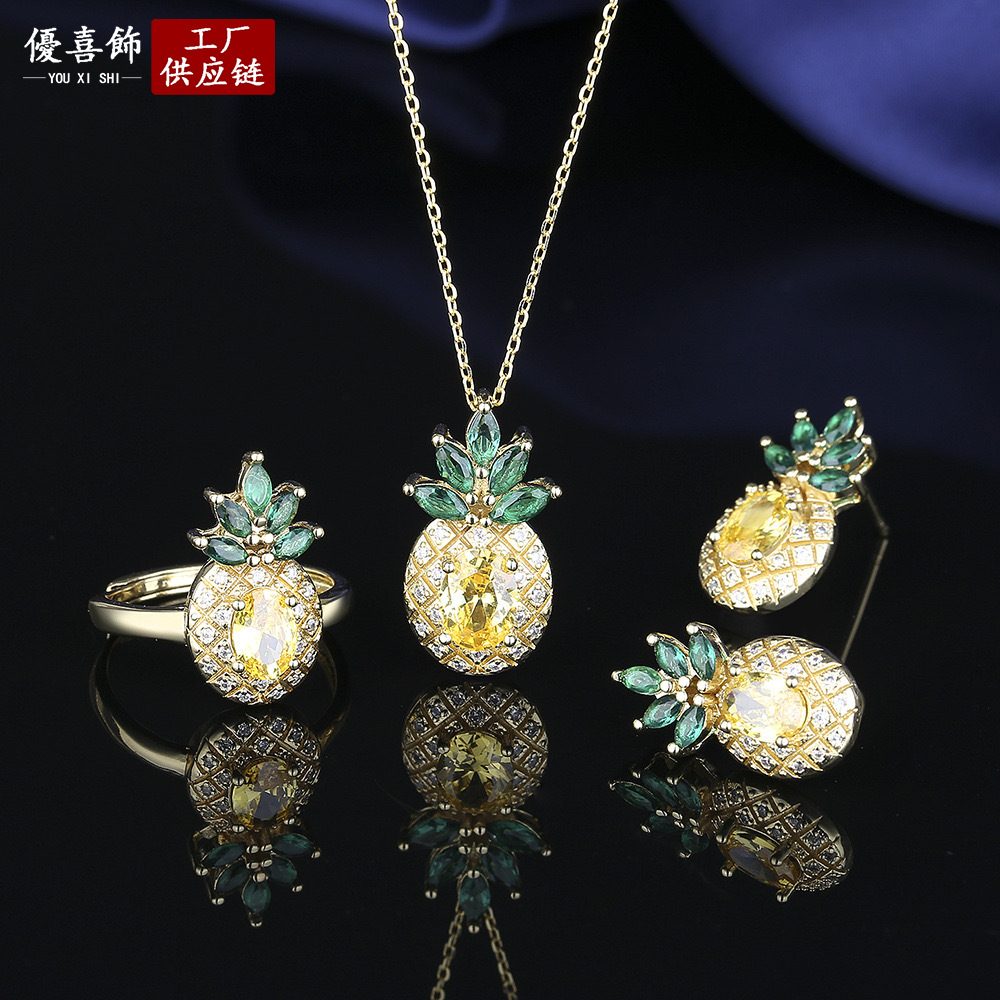 Europe and the United States hot color treasure three-piece simulation jewelry pineapple Joker set necklace ring earrings women wholesale
